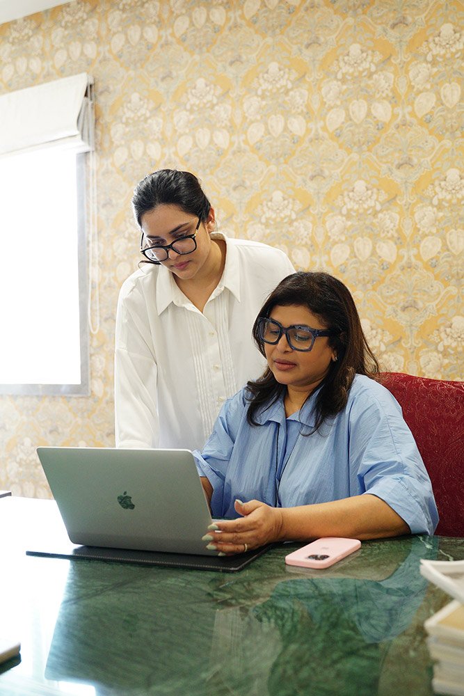 Within Mita Mehta Studio, creativity and clarity exist in harmony. Mita leads the aesthetic and emotional direction of each space, while Arushi guides the studio’s trajectory and voice. Their collaboration gives the practice both depth and momentum, ensuring that every home is styled with heart and steered with purpose.